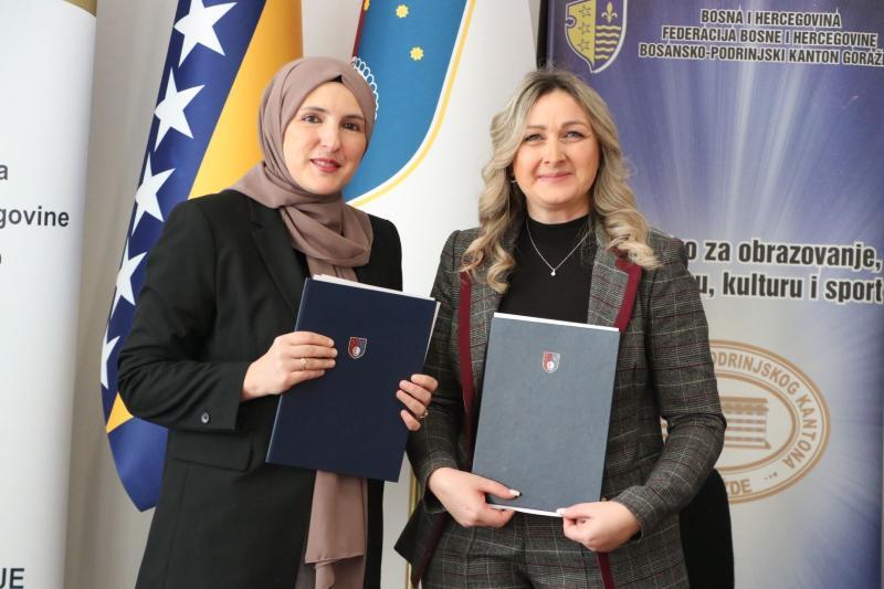Ministrica za odgoj i obrazovanje Kantona Sarajevo Naida Hota-Muminović i ministrica za obrazovanje, mlade, nauku, kulturu i sport Bosansko-podrinjskog kantona Goražde Adisa Alikadić-Herić potpisale su Ugovor o priznavanju stečenih stručnih zvanja u oblasti predškolskog, osnovnog i srednjeg obrazovanja između ova dva kantona.Kako je istaknuto, cilj je postizanje ujednačenog pristupa i vrednovanja rada zaposlenih u oblasti predškolskog, osnovnog i srednjeg obrazovanja.“Svaki Kanton donosi vlastiti Pravilnik o napredovanju i sticanju stručnih zvanja nastavnika stručnih saradnika i radnika u obrazovanju. Mi smo danas potpisali ugovor o međusobnom priznavanju stečenih stručnih zvanja u oblasti predškolskog, osnovnog i srednjeg obrazovanja, jer naprosto svaki pravilnik podrazumijeva isključivo praćenje unutar svakog kantona, unutar jednog obrazovnog sistema. To su posljedice našeg ustavnog uređenja, jer obrazovna politika je u nadležnosti kantona te u tom smislu mi smo omogućili prosvjetnim radnicima iz Bosansko-podrinjskog kantona i Kantona Sarajevo da imaju prohodnost u svojim stručnim zvanjima, bilo da se prijavljuju za posao u Bosansko-podrinjskom kantonu ili u Kantonu Sarajevo. S ponosom možemo reći da smo dali mali doprinos u jednoj vrsti harmonizacije propisa u dva različita obrazovna sistema”, istakla je ministrica Hota-Muminović.Nakon potpisivanja sporazuma, ministrica Hota - Muminović je s ministricom Alikadić-Herić, direktoricom Instituta za razvoj preduniverzitetskog obrazovanja KS Senadom Salihović i saradnicima posjetila Osnovnu školu “Hrasno”.